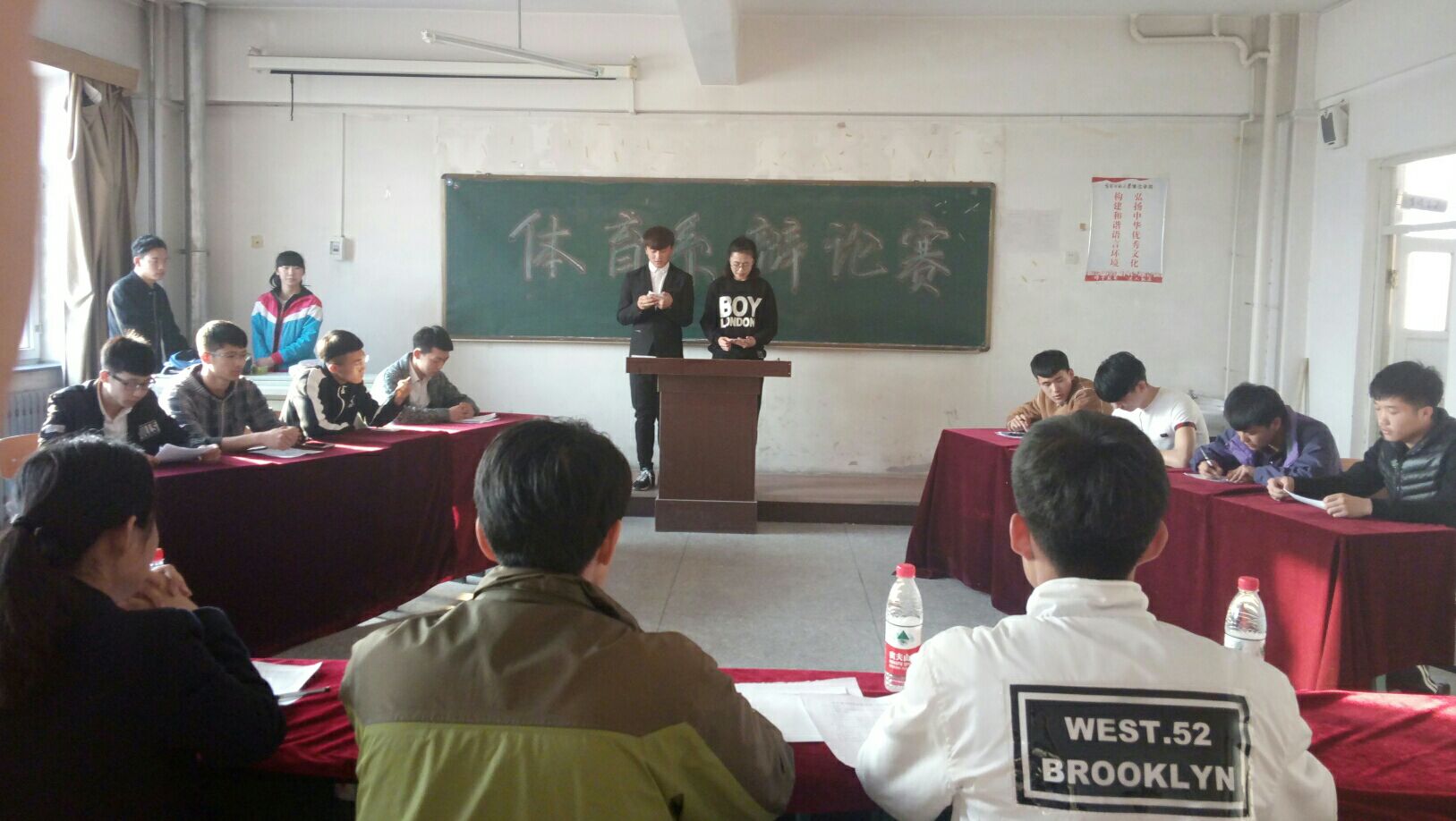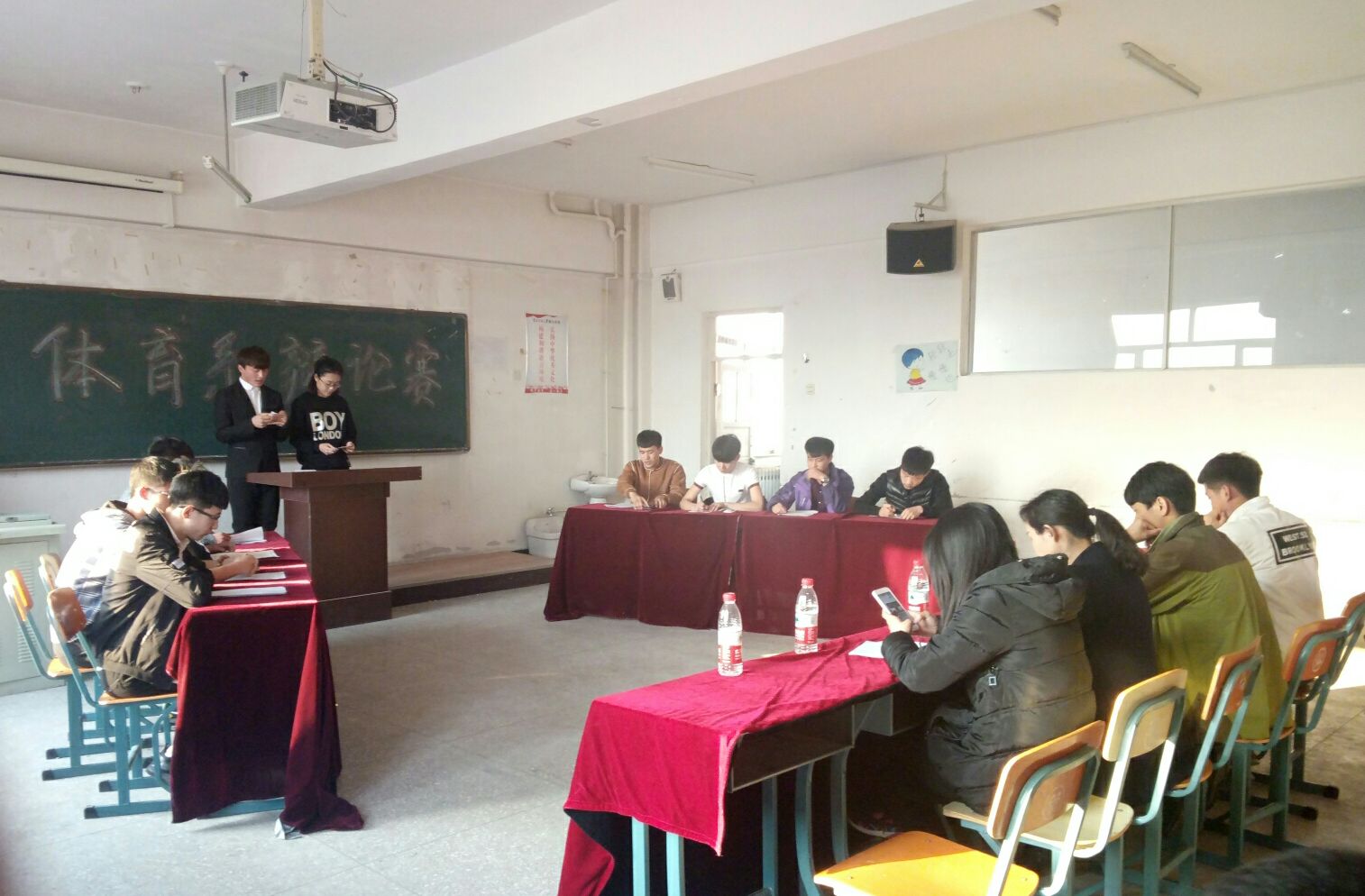 2017年3月15日(周三)下午三点,在博达万博体育官网第一教学楼1417教室进行了体育系辩论赛决赛,出席辩论赛的有体育系副主任卢秉旭老师,体育系辅导员尹茹老师,以及学生代表。比赛的成员是初赛胜出的16级一班,16级三班,16级五班。