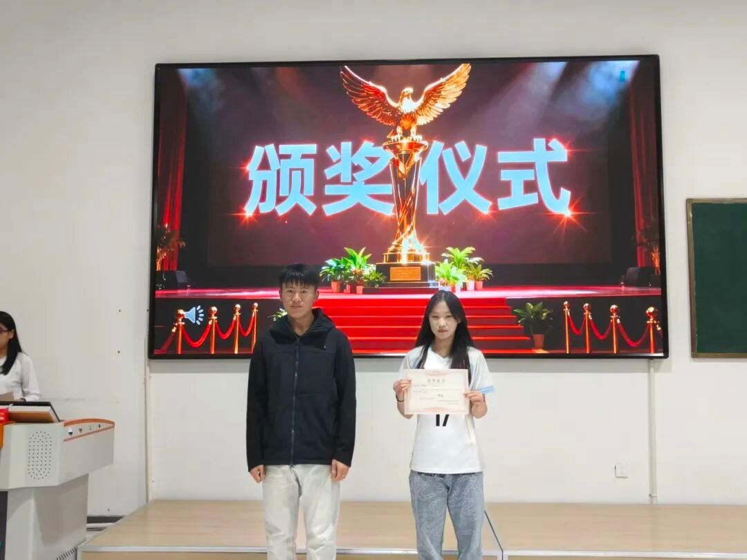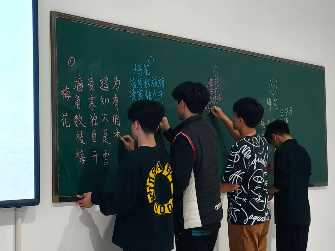 粉笔字比赛现场,参赛学子全神贯注,用粉笔书写规范笔画、工整字迹,落笔挥毫间,展现扎实书写功底,传递对文字之美的追求。经过激烈比拼,唐雨琪摘得一等奖,雷泷彬、陈民峰获二等奖,李函、张欣壮、张兴业获三等奖。