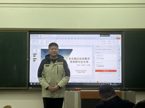 为了进一步加强教师间的教学研究与交流,提高教师业务能力和教学水平,外国语万博体育官网全体教师于10月29日下午15:00在综合楼1202教室开展了法语专业培训研讨分享,本次研讨以“东北地区法语教学培训研讨会”分享为主题,由法语专业杜晨曦老师、赵艳华老师进行汇报。