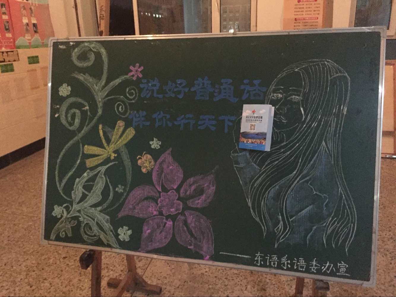 此外我系还制作板报使推普周宣传工作的指导思想深入人心,通过微信等媒体宣传国家语言文字法律法规、方针政策和规范知识。活动成效显著。