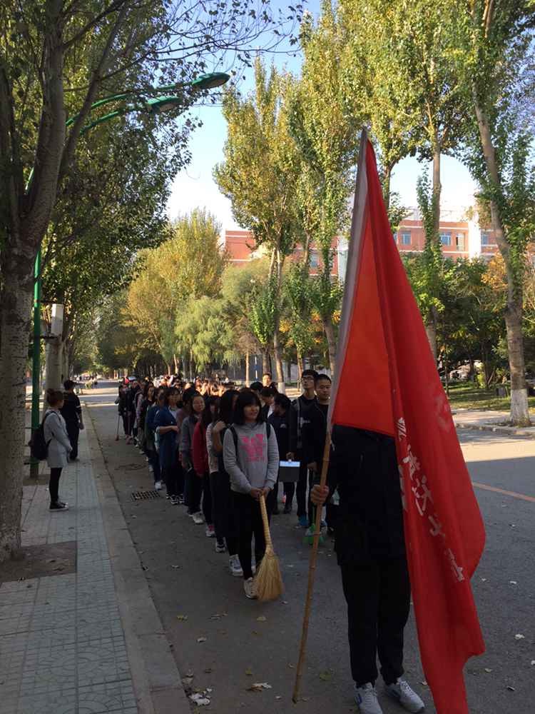 为了使我们的校园更加美丽,保持校园卫生,让后辈新生们熟悉校园能够快速融入适应大学生活,生活在干净整洁清爽的校园里,我系于2015年10月15日在校园周边进行了“清扫校园”的活动,由学生干部领导,大一全体新生参加了此次活动。