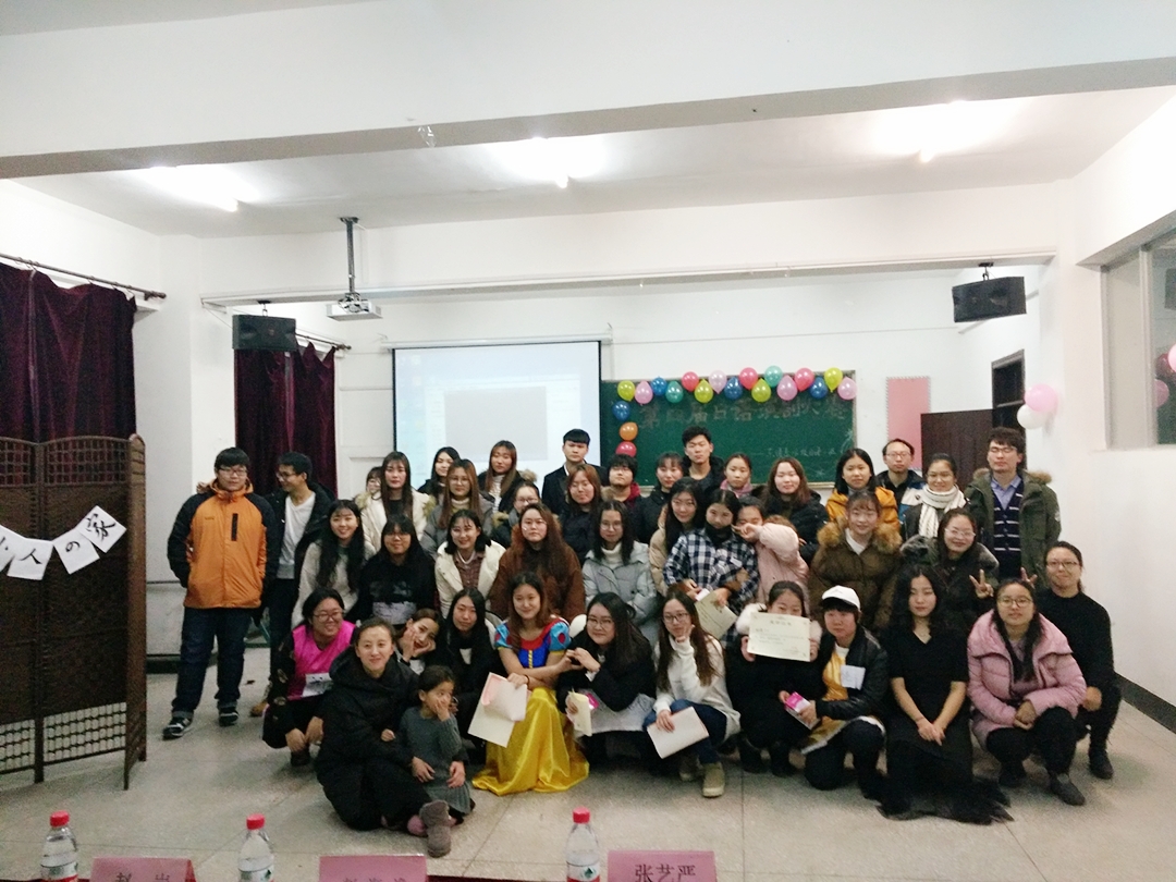 为了增强日语专业同学的学习兴趣,提高同学们的日语口语能力,活跃同学们的课余生活,2017年12月13日下午4:00,由16日语1班主办的“第四届日语演剧大赛”在3201教室正式开始,赵岩老师、吴俊博老师、李明杰老师、张艺严老师和大一大二全体同学参加了此次活动。