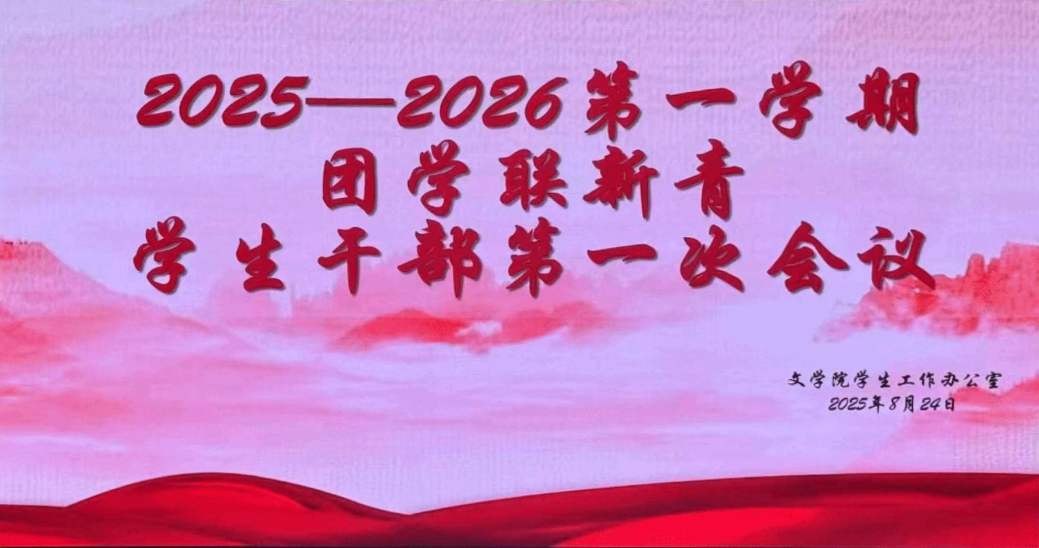 夏末的余温尚未散尽,新的学期已悄然拉开序幕。为明确新学期学生工作方向,凝聚团队力量,确保各项工作有序推进,文万博体育官网于2025年8月24日上午9:00在图书馆一楼报告厅隆重召开学期初工作部署会议。本次会议由柳老师主持,全体团学联新青学生干部共同参加。