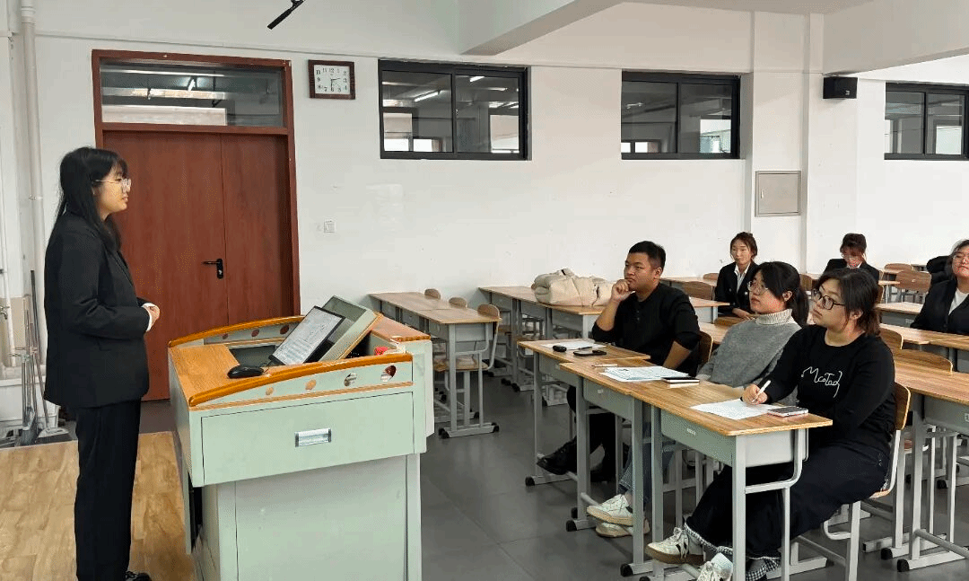 25级辅导员石欣玉老师在每位竞选者发言时都认真倾听、细致记录。在演讲结束后,她结合具体岗位职责与每位同学的个人特点进行提问,进一步考察竞选者的应变能力、责任意识与服务理念。