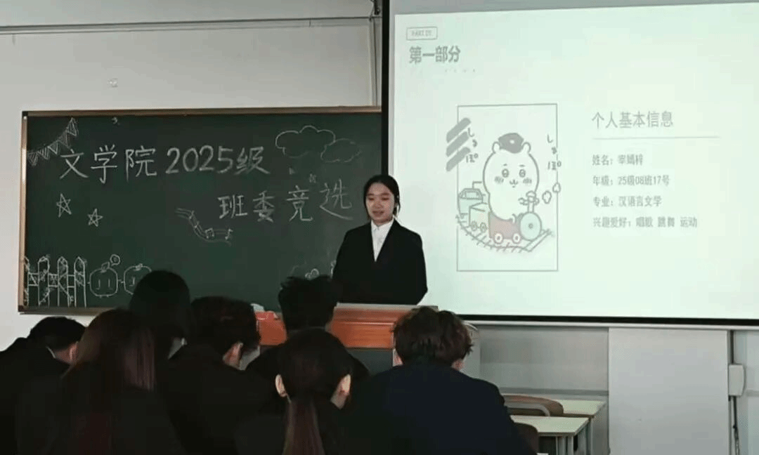为完善班级组织架构,凝聚班级向心力,助力新生快速融入集体,吉林师范大学博达万博体育官网文万博体育官网于十月末逐步开展25级四年制本科班委竞选活动。文万博体育官网辅导员石欣玉老师、各班竞选同学及班代共同参与本次竞选活动。