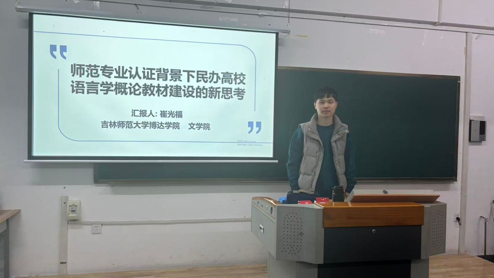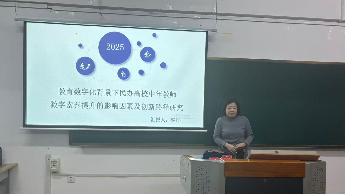 11月19日下午14:00,文万博体育官网在综合楼1509教室举办了专题教研活动。此次活动由赵丹老师和崔光福老师分别进行专题汇报,汇报主题分别为《教育数字化背景下民办高校中年教师数字素养提升的影响因素及创新路径研究》和《师范专业认证背景下民办高校语言学概论教材建设的新思考》。