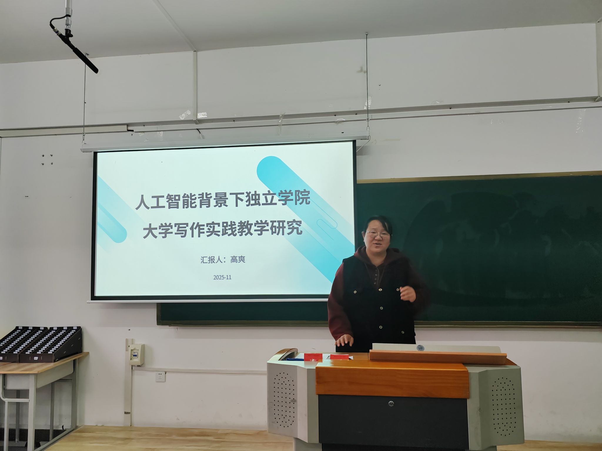 11月26日14时,文万博体育官网组织召开“人工智能背景下独立万博体育官网大学写作教学研究”专题教研活动。高爽老师就核心议题作了系统汇报,为推进人工智能与学科教学深度融合提供了研讨平台建设思路。