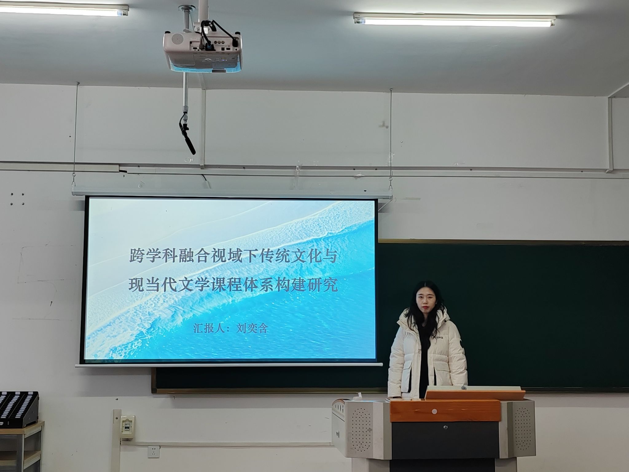 随后,刘奕含老师围绕“现当代文学课程的古代文学资源赋能”这一主题进行了富有见地的交流。她立足于文学学科深厚的历史传承脉络,细致解析了古代文学资源对于现当代文学课程建设所具有的重要支撑价值。刘奕含老师通过理论与实践相结合的方式,探讨了如何合理运用古代文学元素以增强现当代文学教学的内涵深度与文化厚度,为相关课程的高质量发展提供了富有创新意义的建设思路与实施路径。