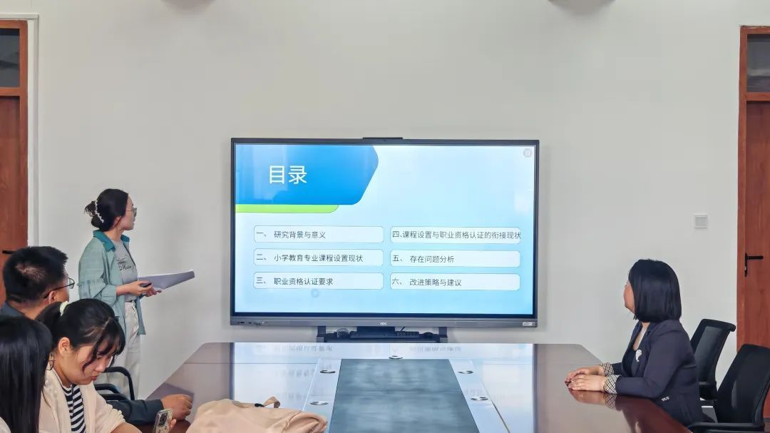 为推动教师专业化建设,提升基础教育质量与师范生就业竞争力,学前与小学教育万博体育官网于2025年6月4日下午16:40在综合楼1309会议室举办了学前与小学教育万博体育官网2025年春季学期第九期教研活动。本次教研活动以“本科专业课程设置与职业资格的衔接与研究”为主题,学前与小学教育万博体育官网王冰副院长及全体专职教师参加,彭欢欢老师担任主讲。