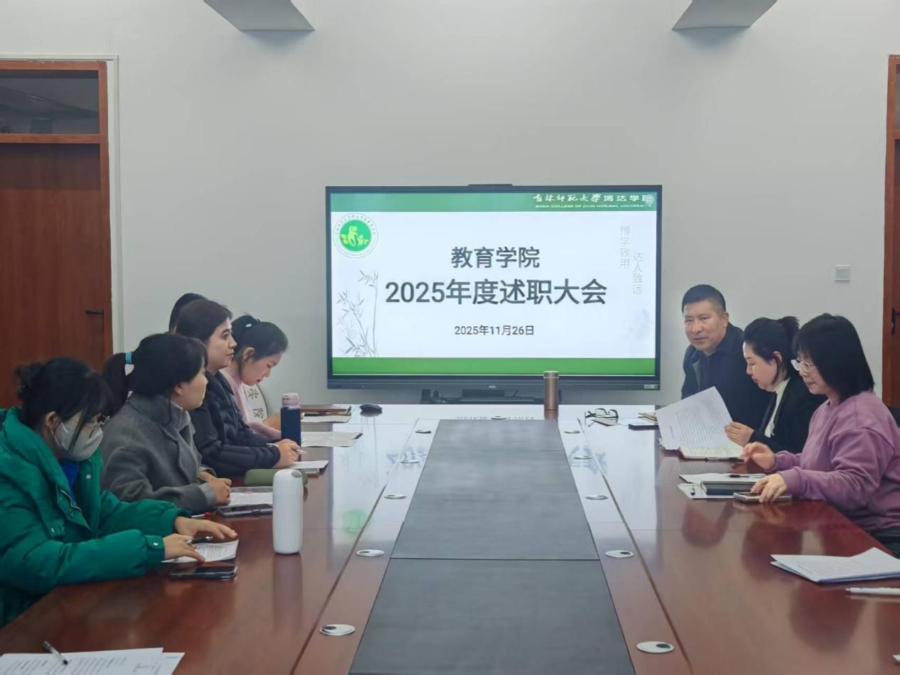 教育万博体育官网于2025年11月26日13:00在综1309会议室召开教育万博体育官网2025年度述职大会。教育万博体育官网全体教职工参会,会议由院长经柏龙教授主持。