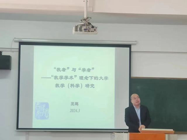 为提高育人成效,促进教师专业发展,促进专业发展建设,帮助教师更好的开展育人工作。学前与小学教育万博体育官网于2024年3月27日14:00在综合楼1302教室举办了“教者”与“学者”——“教学学术”理念下的大学教学(学科)研究的讲座,这是本学期第二次教研活动。本次讲座的主讲人为吉林师范大学王鹏教授,学前与小学教育万博体育官网全体专职教师参加此次讲座。