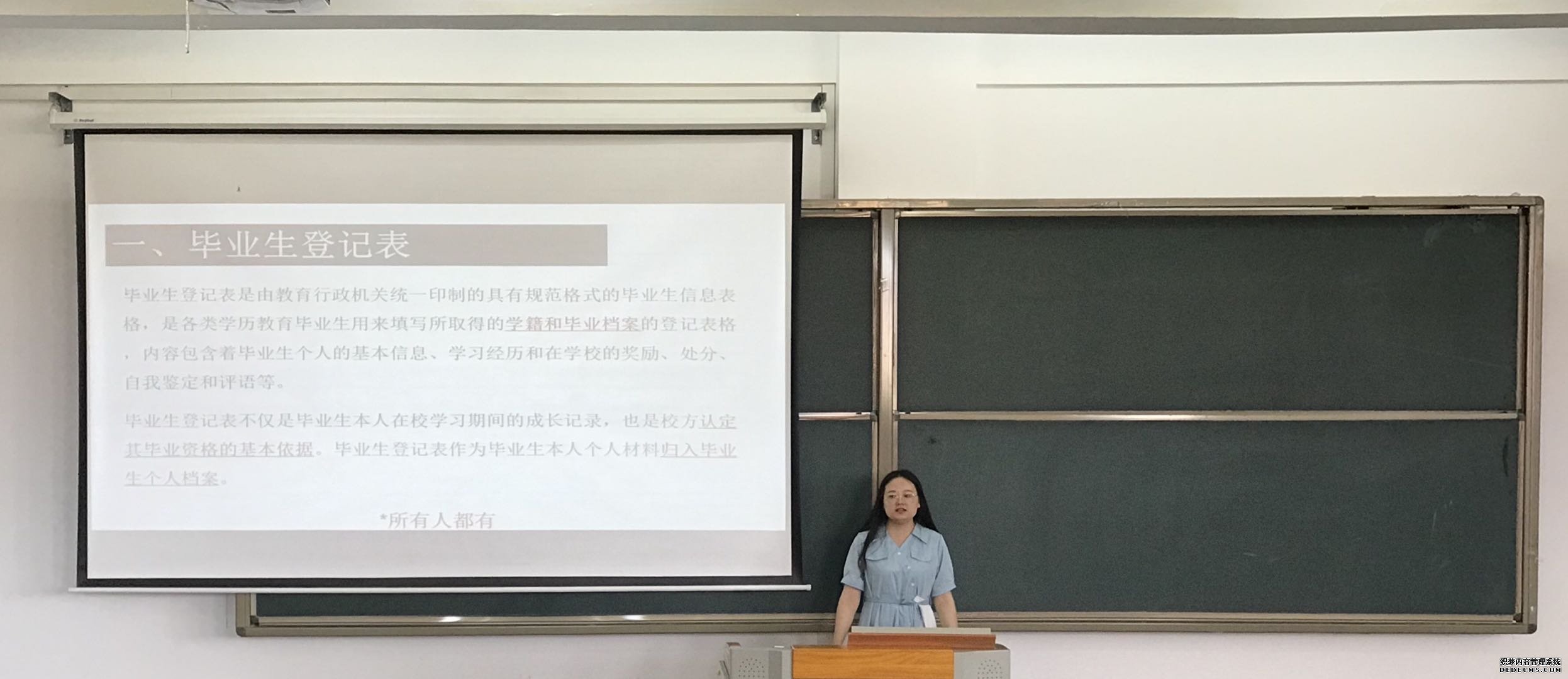 会议伊始,马金铭老师向同学们说明了有关毕业生登记表的相关注意事项,着重向同学们强调了“报到证”和档案邮件的相关事宜,告诉同学们要注意档案邮寄的收件人或收件部门。