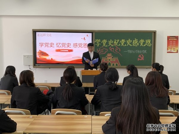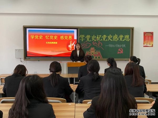 为深入推进党史学习教育活动,传承红色基因,深情回顾党的奋斗历史,学前与小学教育万博体育官网于2021年4月9日在综合楼1320教室开展“学党史 忆党史 感党恩”红色经典朗诵活动,全体学生党员参加。