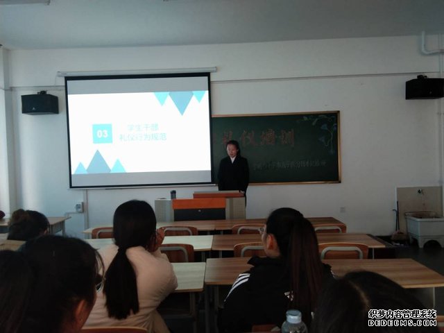 接着,主持人李梓涵着重给大家介绍学生干部礼仪行为规范的具体要求。先介绍了仪表行为篇,身为学生干部,妆容衣着都必须得体,个人言行举止都得符合学生干部身份,刻苦学习,积极上进并积极配合老师工作。再介绍了礼貌篇,尊重师长,勤俭节约,遵守公共纪律等的良好习惯都要保持并发扬。然后重点介绍了纪律篇,面对使用违规电器情况和考试作弊问题,学生干部应该坚决抵制这些违反校规校纪的行为并以身作则远离不良行为。