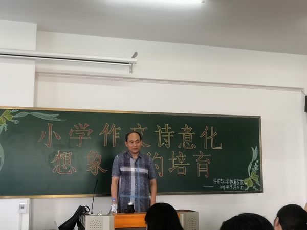讲座主讲内容为:小学作文的国家顶层设计;小学作文的思维方式;小学作文的审美属性。分别从以下三方面展开:第一,培养孩子们的观察力和正确认知,这是基础的一面。第二,提高孩子们的细节写实能力,这是关键部分。第三,丰富孩子们的想象力和创造力,这是最重要的一方面。讲授过程中,周教授以“树干上的桃花”、“弯弯的小河”为例的写作手法,向大家提出问题。在场观众积极发言,各抒己见。随后,周教授在点评大家意见的同时详细分析了描述桃花和河流的原因,答案是在基于孩子们正确认识事物的基础上,结合自身实际,用想象创造出来的新形象,使得在不同的思维方式和独特的审美下让文章内容更加丰富多彩。最后,学前与小学教育万博体育官网院长赵晓光致总结辞,并代表万博体育官网向周京东教授表示衷心感谢。