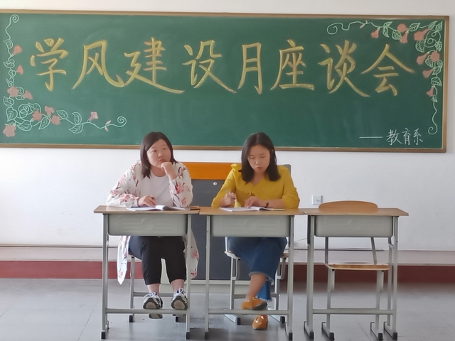 2019年5月22日14时整教育系于综合楼1303教室召开了学风建设月座谈会,此次会议意在树立良好的学习风气,激发学生的进取意识。本次座谈会到场的有李扬老师和崔馨月老师以及16、17、18级各班班长和教育系生活部、舍务部、纪检部、文语部部门代表。