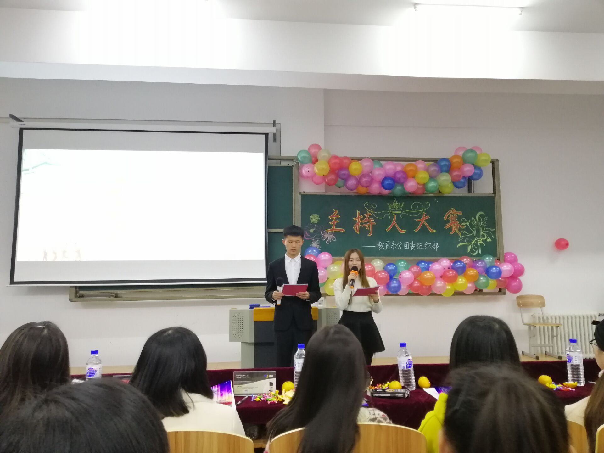 2018年10月19日下午六点零五分,教育系在1112教室成功举办了“新生主持人大赛”,莅临本次活动的嘉宾有:教育系辅导员常海涛老师、李扬老师、崔馨月老师,教育系主席刘斌、分团委副书记张丹、副主席曹赛男、曹丹、樊荣、社联主席毕嘉桐、社联副主席苑成浩和宋金玲、各部门部长及2018级新生。