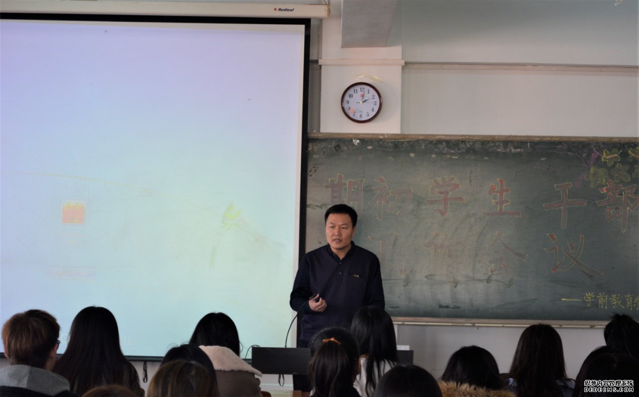2017年3月8日13:40吉林师范大学博达万博体育官网学前教育系于一教五楼1501教室举办了期初学生干部工作会议。新学期,新气象,为了使学生及学生干部能够更好的学习和工作,我系办公室主任刘庆斌老师主持会议进行,学生会各部门成员积极参与其中。