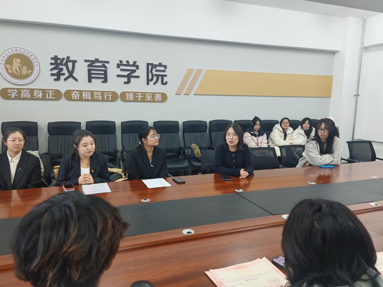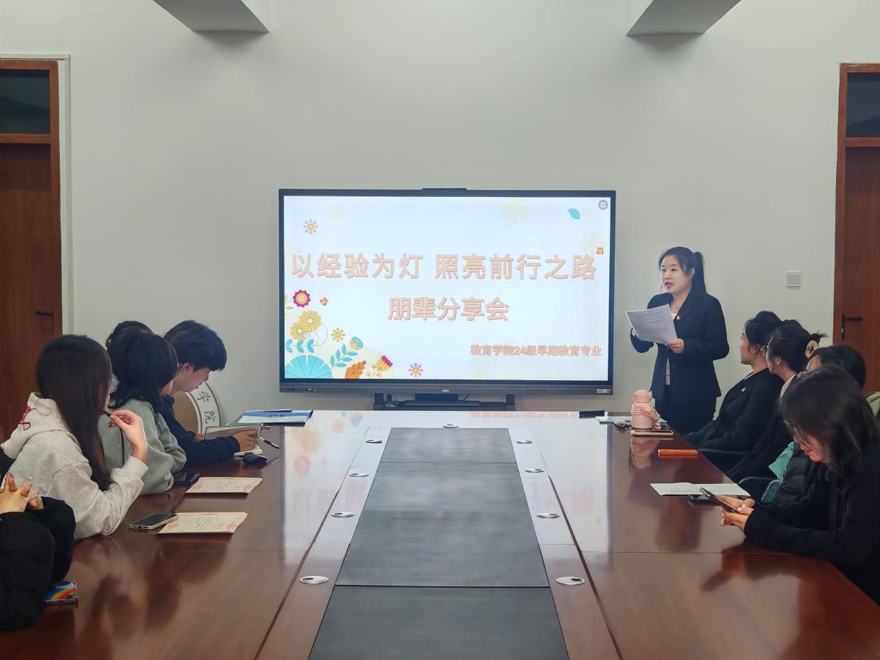 为了帮助24级早期专业的同学们明确目标,了解专升本备考信息,解答心中疑惑。教育万博体育官网于2025年11月12日15:00在综合楼1309会议室举办主题为“经验为灯,照亮前行之路—朋辈分享会”。参加本次会议的人员有22级本科辅导员马金铭老师、23级本科辅导员刘皓源老师、23、24级专升本辅导员王一波老师、24级本专科辅导员高馨老师、25级专升本(两年制)小学教育辅导员朱滢羽老师以及24级早期教育全体学生。