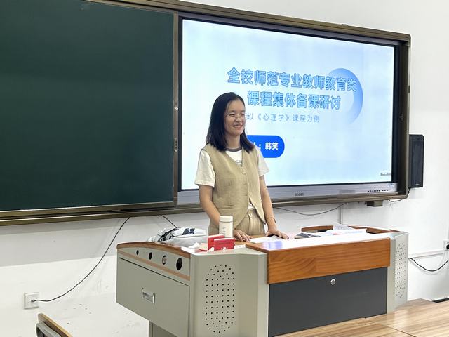 为进一步落实公共课、专业平行课集体备课制度,提高课程建设水平,学前与小学教育万博体育官网于2024年9月4日13:30在综合楼1304教室举办主题为:全校师范专业教师教育类课程集体备课研讨—以《心理学》课程为例”的教研活动,为教师们充分交流与分享课程建设思路搭建平台。此次教研活动由韩笑老师主讲,学前与小学教育万博体育官网全体专职教师参加。