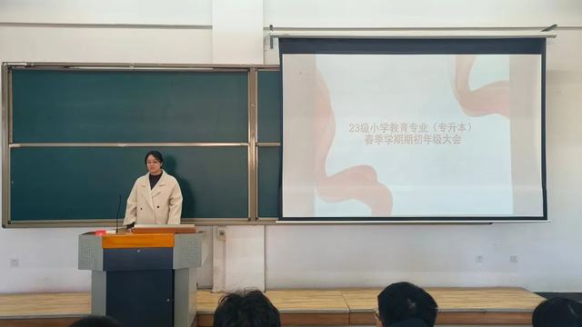 为了提升学生的学习积极性与班级凝聚力,为学生们的未来职业规划提供指导,学前与小学教育万博体育官网于2024年3月13日14:00在综合楼1118教室召开了23级小学教育专业(专升本)春季学期期初年级大会。本次大会由23级小学教育专业(专升本)辅导员王一波老师主讲,23级小学教育专业(专升本)全体学生参加。