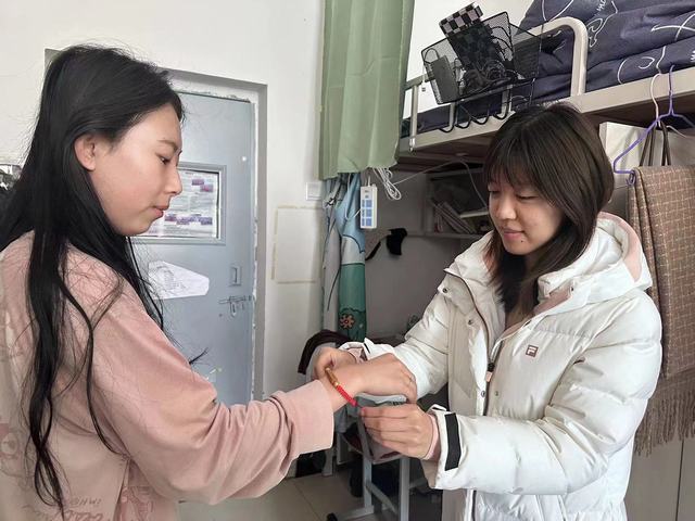 此外,辅导员老师为每一位考研学子精心准备了“金榜提名”的手链,寓意着考研学子超常发挥,逢考必过,如愿上岸。小小的手链中饱含着对考研学子温暖的问候,凝聚着浓浓的爱意和真诚的祝福。