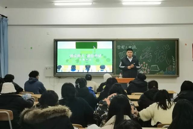 考试,是对阶段学习的总结和检验。在期末考试和英语四六级考试到来之际,为打造学前与小学教育万博体育官网良好学风,营造公平公正、诚实守信的考试氛围,学前与小学教育万博体育官网23级本专科辅导员郑越洋老师组织23级本专科各班同学开展诚信考试主题班会。