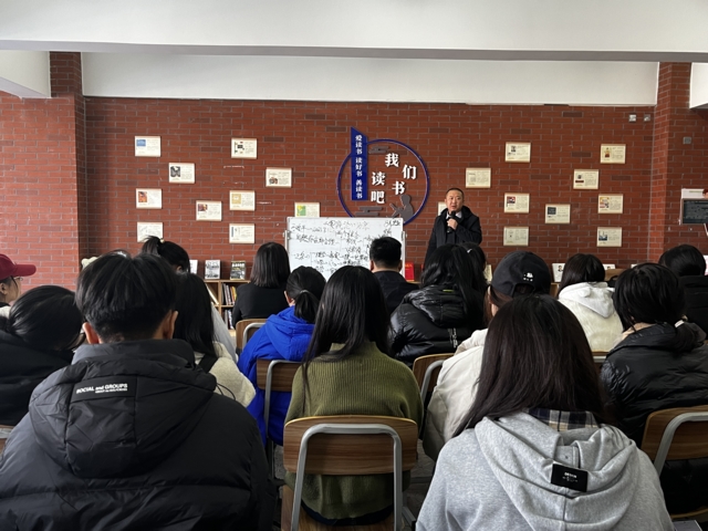 书香浸润心灵,阅读点亮人生。在我们的人生旅途中,阅读是不可或缺的一部分,为增加同学们的知识储备,培养同学们的阅读兴趣,学前与小学教育万博体育官网志工部于2023年11月17日在综合楼三楼大厅开展 “我们读书吧”读书分享会系列活动。本次活动邀请思政部专职教师贾春生老师作为主讲嘉宾。出席本次活动的有学生办公室主任汤鹏宇老师,小学教育专业负责人陶可新老师,辅导员高馨老师、郑越洋老师以及21、22、23级部分学生。