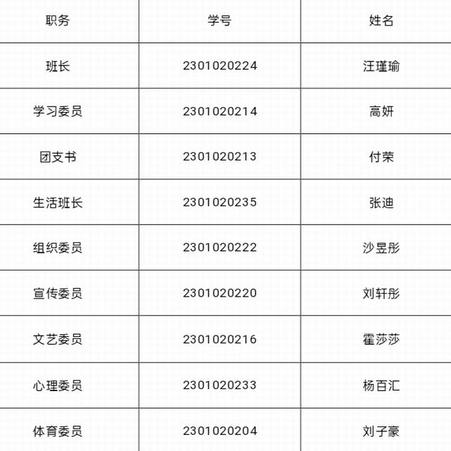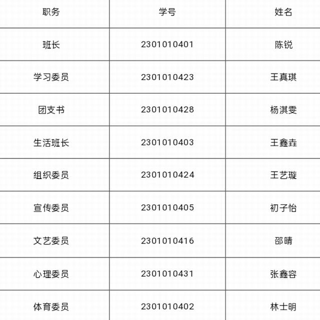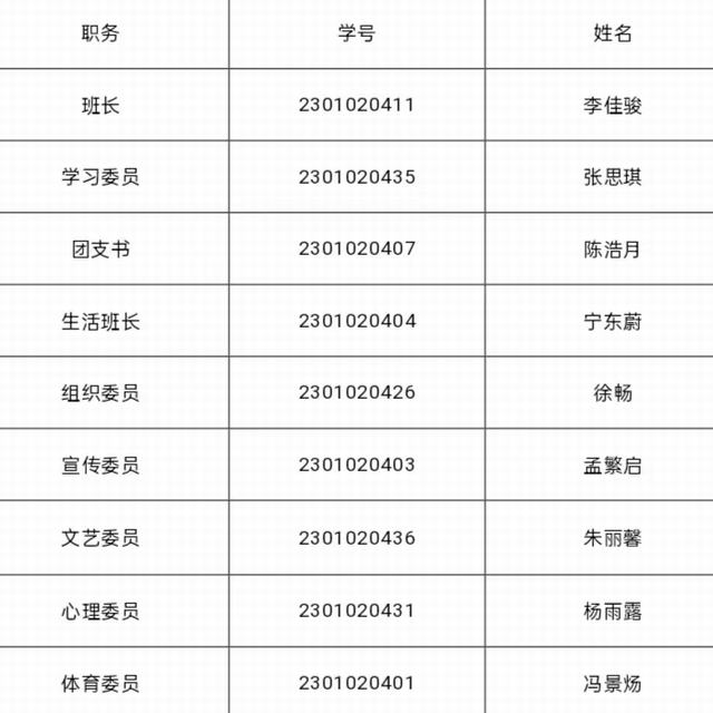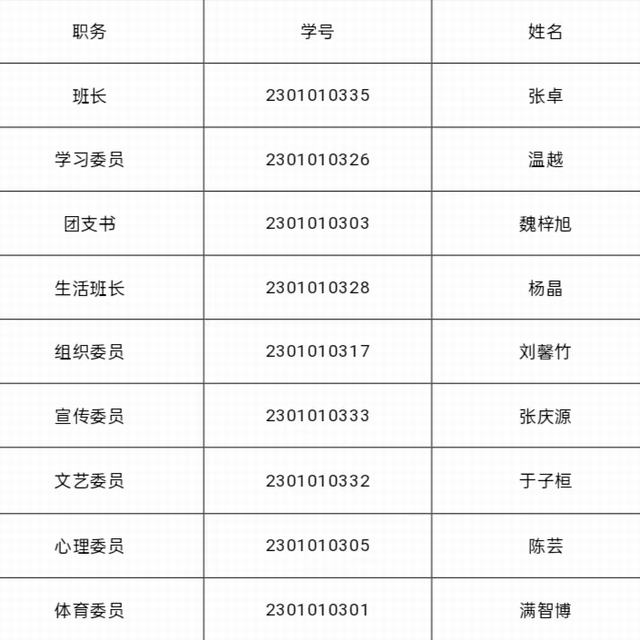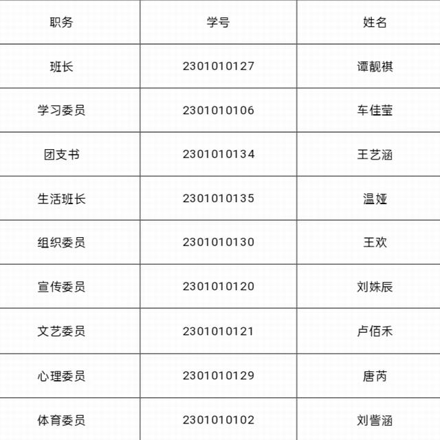 随着这次班委选举圆满落下帷幕,23级新生们也开启了新的校园生活篇章。现将竞选结果公布如下: