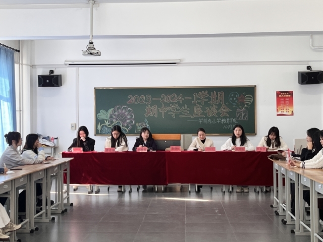 为了切实解决学生们在学习生活中的实际困难,提高学习质量,学前与小学教育万博体育官网于2023年10月18日13:30在综合楼1303教室召开学前与小学教育万博体育官网2023-2024学年第一学期期中教学检查学生座谈会。出席此次会议的有教学办公室主任胡静雪老师,学前教育负责人张东月老师,小学教育负责人陶可新老师,专职教师赵胜男老师,教学办公室唐语遥老师和刘芷含老师、21、22级各班学委以及23级各班学生代表。