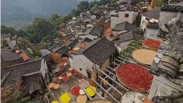 每年立秋,随着果蔬成熟,湖南、江西、安徽等山区村民就利用房前屋后及窗台、屋顶架晒或挂晒,久而久之就演变成一种农俗现象。五颜六色的丰收果实相映成趣,使人仿佛走进了一幅幅油画。
