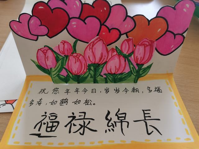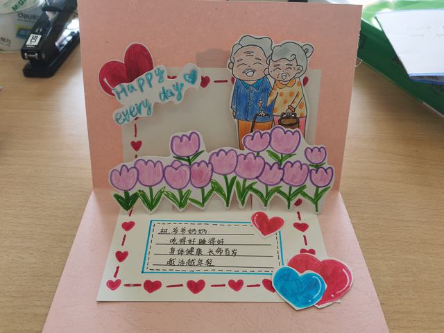 同学们都踊跃地参与到了本次活动中,作品形式以贺卡为主,用生动的人物形象、优美的文字、精致的手工将这份热情展现得淋漓尽致。同学们将所有的祝福与关心注入到文字中,希望这些作品可以带给老人温暖和感动。