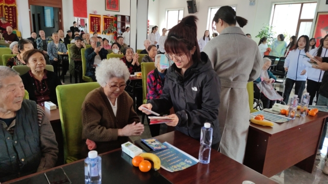 接下来进入了联欢互动环节,辅导员老师和志愿者们为爷爷奶奶们分发了牛奶和水果,并对他们进行了亲切的问候。在一声声衷心的问候中,志愿者为老人们献上《黄梅戏》,让老人们感受了中华戏曲的浓厚韵味。温婉的萱草花,散发着淡雅的香,歌舞乐表演《萱草花》轻轻柔柔的沁入人们心扉,让老人们为之深深地沉醉。