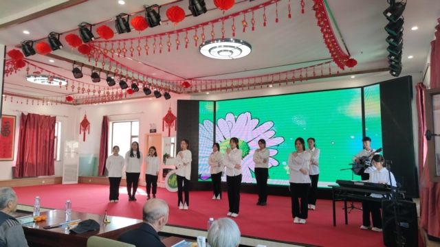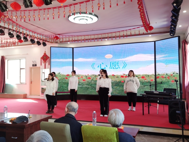 活动伊始,宋佳桐老师作为教师代表为老人们送上了衷心祝福,在宋佳桐老师精彩的发言后,志愿者们为老人们献上了自发组织的表演。翩若惊鸿,婉若游龙的古典舞《梁祝》将中华民族的传统美学体现的淋漓尽致;一曲动听的歌曲《心愿》,将那段奋斗的青春浮现在老人们眼前,让他们共同回忆起了美好温暖的画面;忆往昔,峥嵘岁月稠,望红旗,往事涌心头,志愿者们用一首气势磅礴的诗朗诵《红旗颂》,表达对中国共产党深深地眷恋,赢得了爷爷奶奶们热烈的掌声。