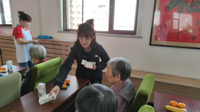 随后,辅导员老师和志愿者们为老人们分发爱心贺卡、并由在场的志愿者们代表吉林师范大学博达万博体育官网学前与小学教育万博体育官网学子们祝爷爷奶奶们日月昌明,松鹤长春,后福无疆,富贵安康。同唱一首歌,共展一面旗,乘着歌曲《火苗》的翅膀,让我们在尊老、敬老的起点上谱写爱老、助老的华章。最后,在辅导员老师、全体志愿者和老人们合照的快门声中,本次活动缓缓落下了帷幕。