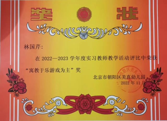 林国芹:“学高为师,身正为范”,作为年轻的实习教师,我深知自己存在许多不足,这次校外实习的幼儿园为我们提供了一个提升自己的教学水平、学习先进的教学理念、积累丰富的教学经验的平台,在这次实习中我积累了很多经验,得到了园里领导老师的肯定,也发现了自己的不足,接下来会不断改进,再接再厉。与此同时,也希望学弟学妹们能沉淀自己,扎实学好基本功,不要把实践课当成任务,而是把它们当成兴趣去培养自己。现在的你们除了学习生活之外,会拥有很多属于自己的时间,可以在这段时间里尽情地去做自己想做的事,实现自己的梦想,别让自己的大学生活留有遗憾。