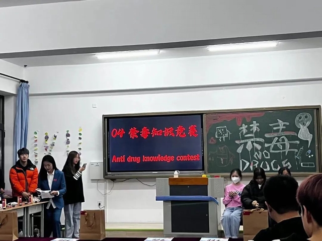 随后,主持人带领同学们进行有关毒品知识竞答的环节,使同学们在参与游戏的同时也能够学习到识毒、防毒的知识,增加对毒品的了解,牢记禁毒条例,自觉抵制毒品。