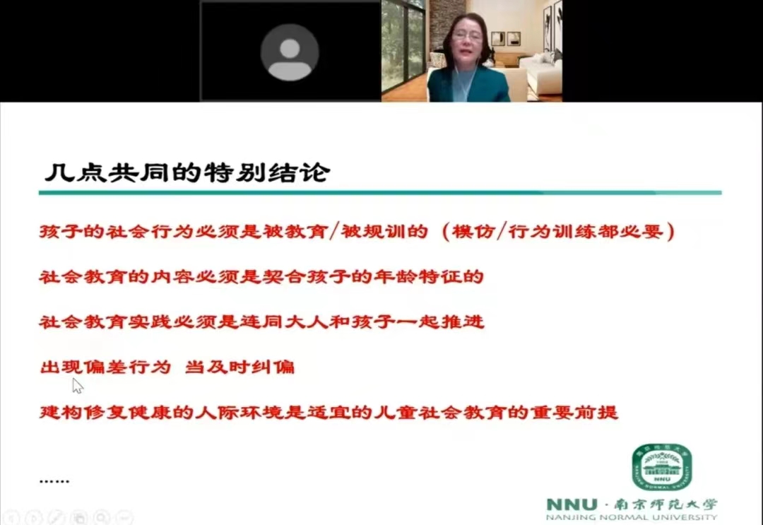 为了进一步提高同学们的专业素养,加深对儿童教育和社会教育的了解,学前与小学教育万博体育官网于10月9日20:00组织全体学前教育专业的学生们观看由南京师范大学教育科学万博体育官网刘波晶教授主讲的“儿童的社会和社会中的儿童”讲座。