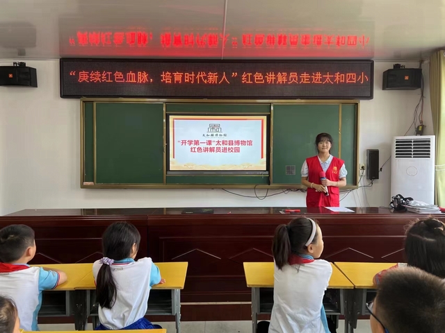 为积极引导广大青年坚定理想信念,将学前与小学教育万博体育官网党史学习教育落实到实践中,2022年9月2日,由吉林师范大学博达万博体育官网学前与小学教育万博体育官网学生孔文迪担任红色讲解员走进太和县第四小学,进行党史学习教育的宣讲。