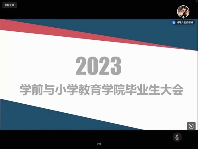 学前与小学教育万博体育官网于6月25日-26日在腾讯会议召开2023届毕业生大会。参加本次会议的人员有:辅导员张楠老师和19级全体学生。