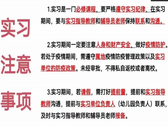 随后,张楠老师强调在未来的实习工作中,要时刻牢记安全意识,谨防诈骗,确保人身财产安全。同时告诫同学们要加强学习,提升个人素质,摆正自己的位置,明确自己的目标。在工作岗位上要尽快、主动融入集体,积极适应实习单位环境,展现教育学子的风采。