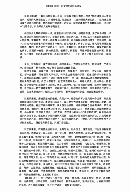 本期就让我们一起来看看20级史优尔同学为我们分享的书籍——《围城》。