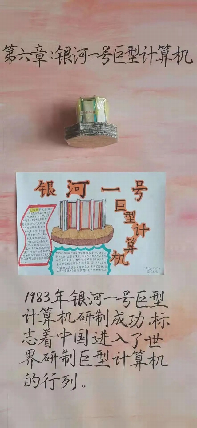 为庆祝中国共产党成立100周年,讴歌中华民族伟大复兴中国梦光辉的奋斗历程,鼓励新时代大学生追寻革命先辈的光辉足迹,发扬“使命在肩、奋斗有我”的精神,学前与小学教育万博体育官网特举办“党建专栏——故事里的中国”活动,本期专栏主要介绍1983年研制的银河一号巨型计算机,作品形式为手工画、废物利用和折纸。