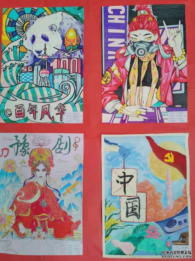在本次画展中,学生们充分发挥想象力,分别以我国的国宝熊猫、首都天安门、中国龙、传统京剧、豫剧等为原型,以中国梦、抗疫精神、农业发展、科技进步等为角度,画出了巧夺天工的精品之作。这些作品生动灵逸、随意洒脱、气势磅礴……吸引了众多师生的目光,同时充分歌颂了百年建党的光辉岁月和建国以来的伟大成就。
