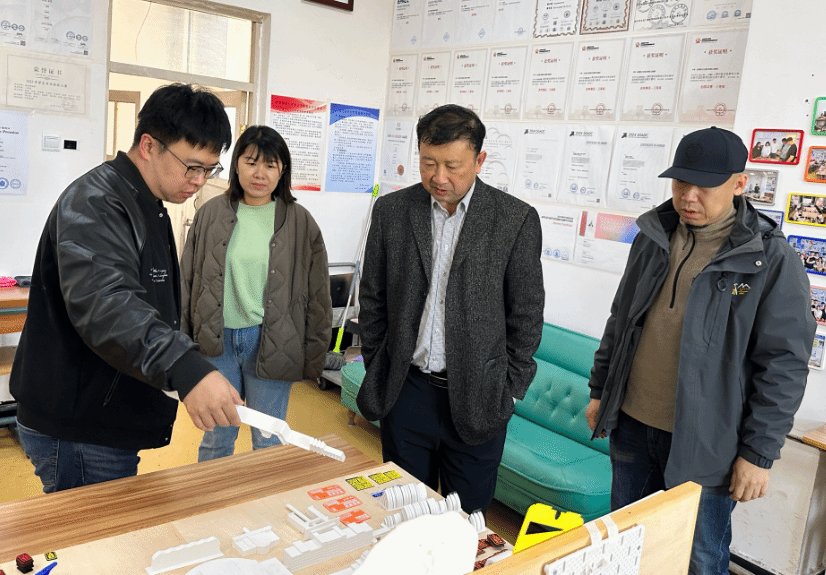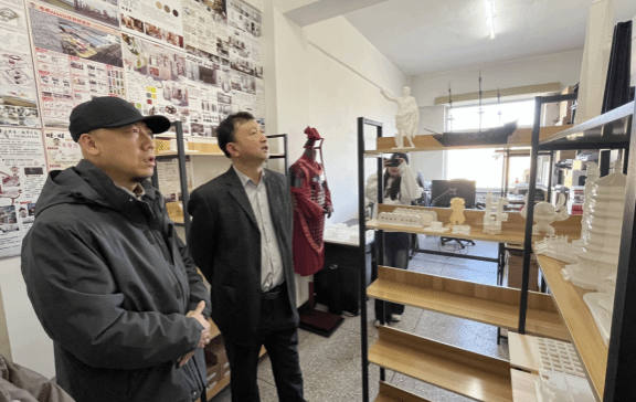 刘松松副院长陪同王志平副局长先后走进万博体育官网2个3D打印工作室。在工作室现场,王志平副局长仔细观摩师生创作的文创产品、3D打印设计作品等成果,逐项询问作品的创作理念、技术应用路径及市场转化前景,对师生扎实的创作实力表示赞赏,并结合文旅产业发展实际,从文旅产品IP打造、地域文化元素深度挖掘市场需求精准适配等方面提出针对性指导建议和意见。