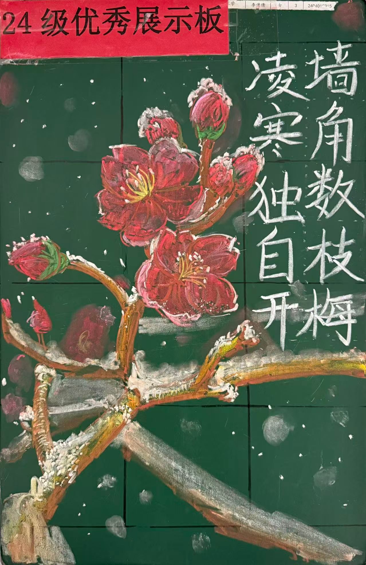 一手好的黑板字是教师不可或缺的教学基本功,直接影响课堂效果。板书训练不仅关乎字迹工整,更能磨砺专注与细致。在反复练习中,学生逐渐养成专注、耐心的职业习惯,这对日后教学工作大有裨益。正因如此,黑板字训练在艺术师范生培养过程中始终具有独特的育人价值。
