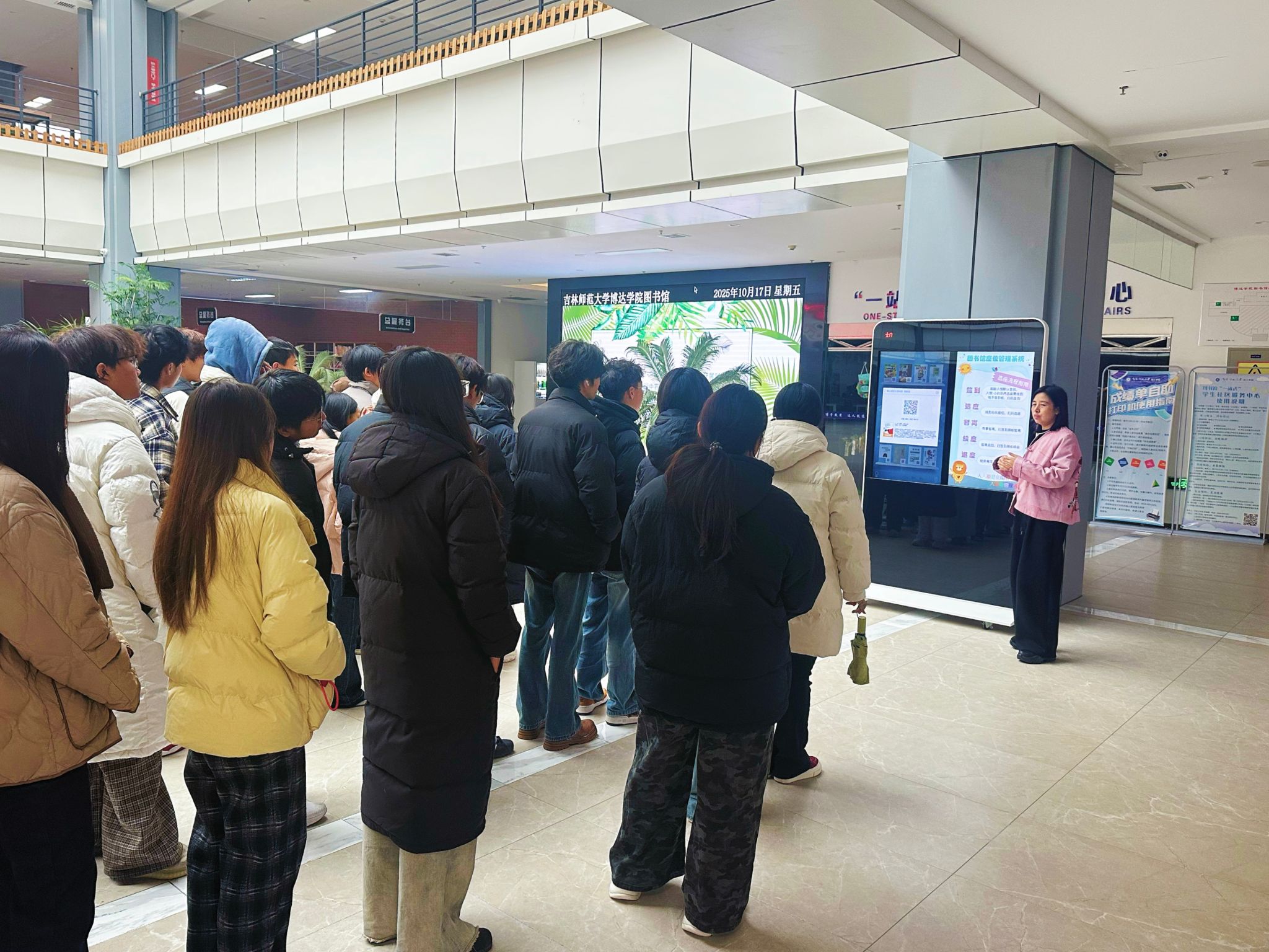 参观过程中,自习区里学长学姐专注学习、查阅文献的场景,成为最生动的“学风教材”。老师们借此引导新生:“良好学风体现在‘坐得住、钻得进’的态度里,希望大家以后常来图书馆,在与同学的相互督促中养成规律学习的习惯。”同时,师生共同学习图书馆文明规范,从“保持安静”“有序借阅”“杜绝占座”等细节入手,明确“学风建设从遵守规则开始”的理念。