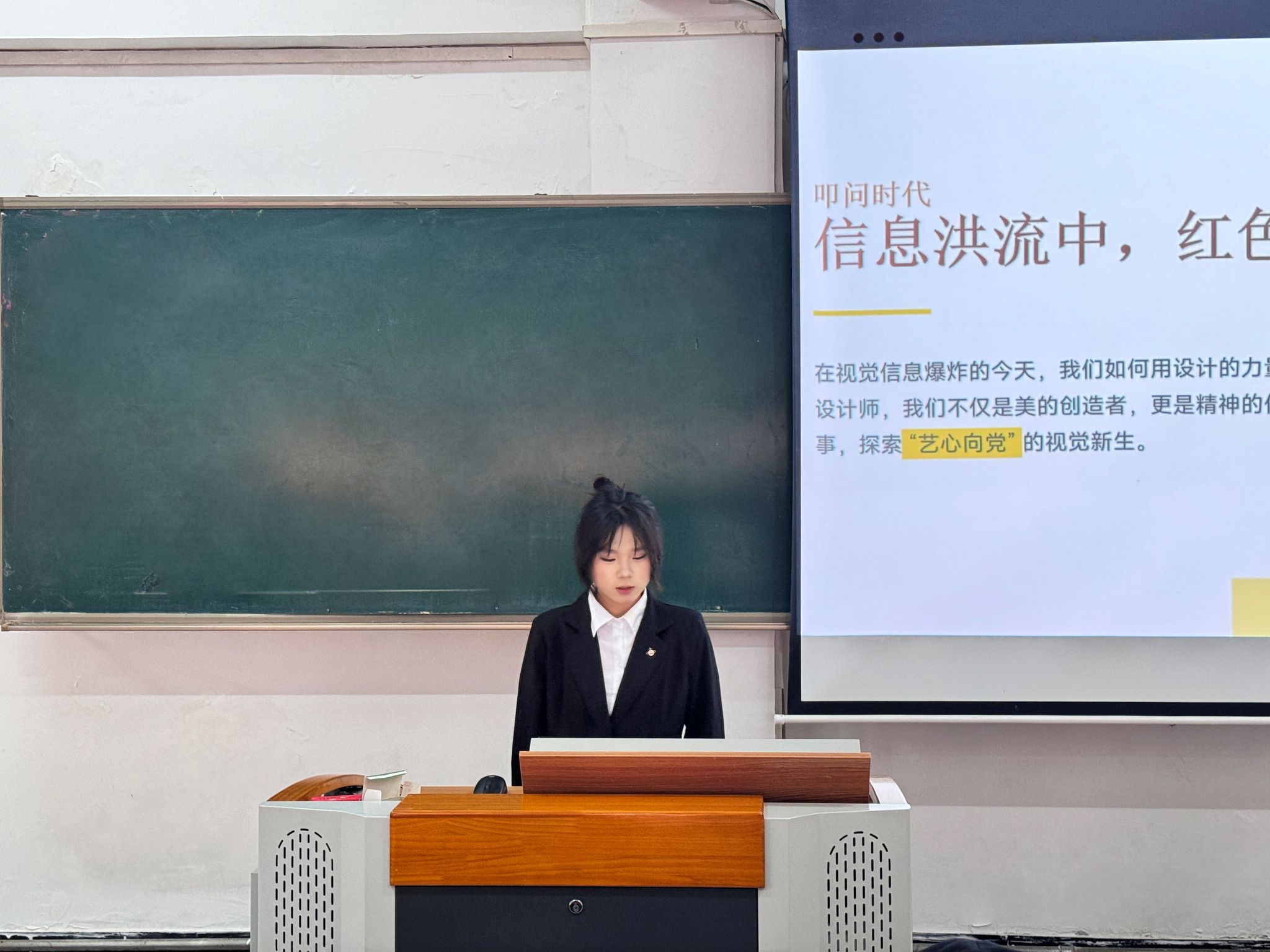 本次“‘艺’心向党”演讲比赛不仅为视觉传达设计专业的同学们提供了一个展示才华、锻炼能力的平台,更是一堂生动的思想政治实践课。它成功地将专业教育与红色文化传承相结合,激励同学们在未来用手中的画笔和设计语言讲好中国故事,传承红色基因,为成为德才兼备的优秀设计人才奠定了坚实的基础。