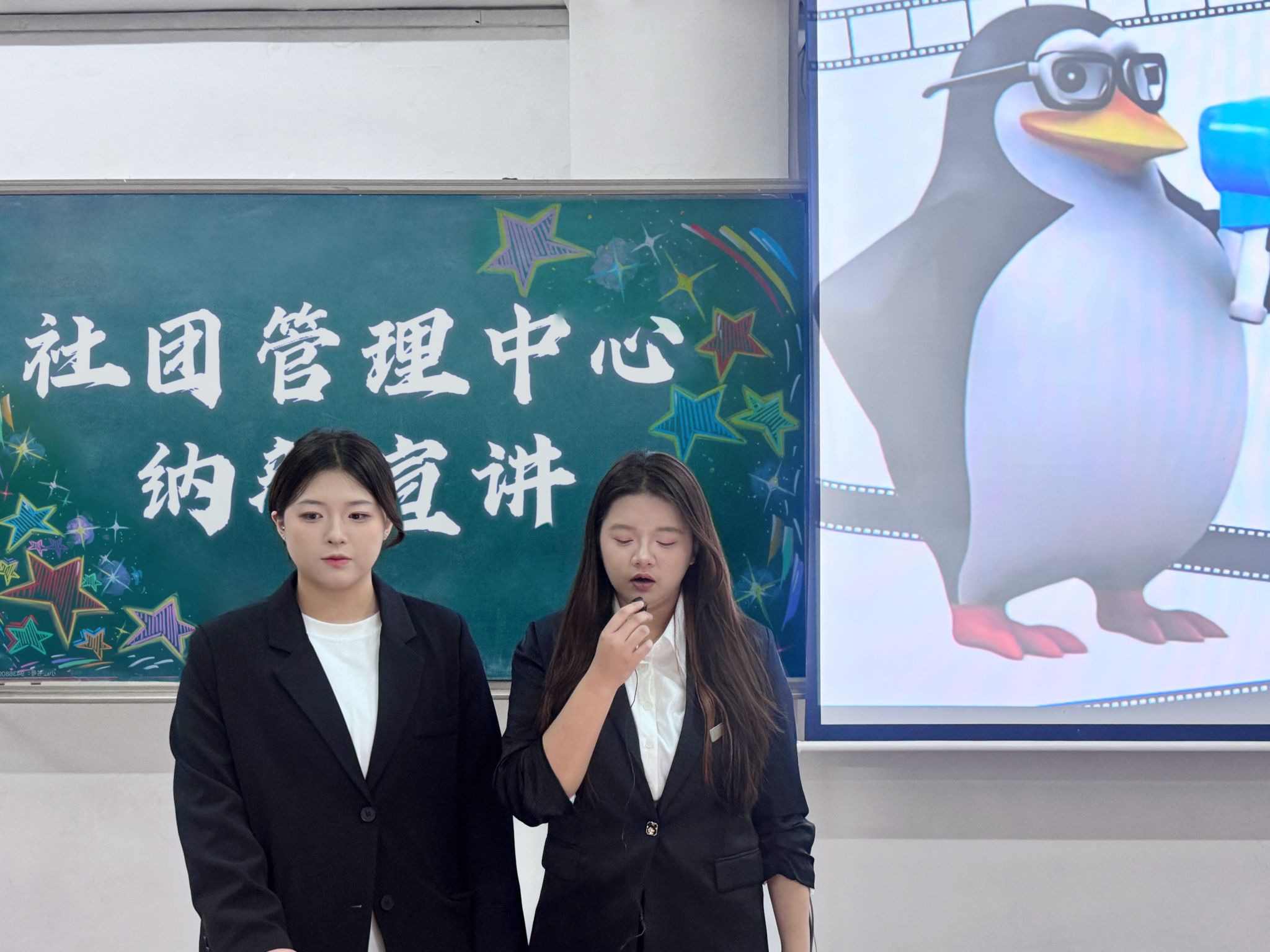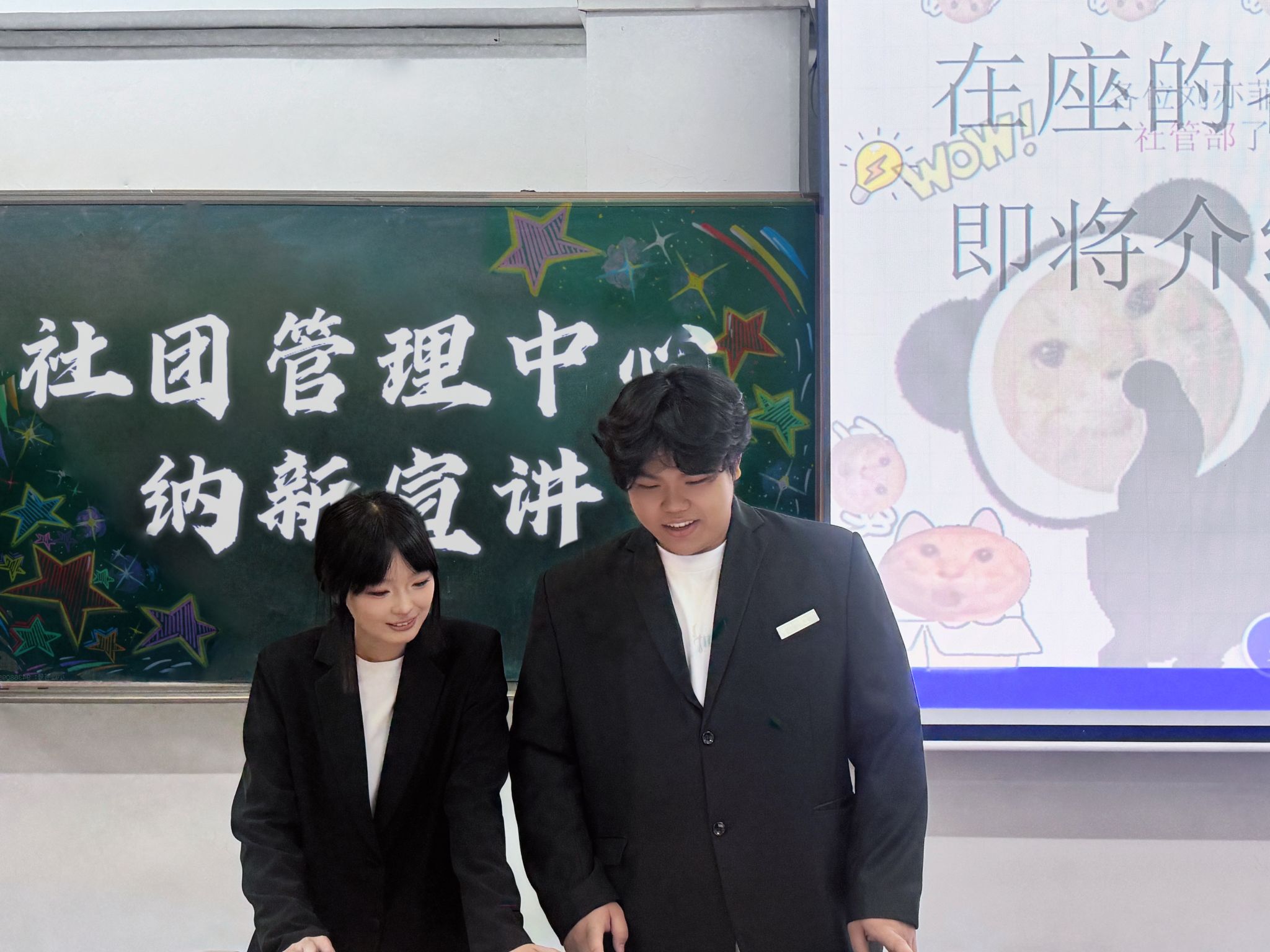 为了营造积极向上的校园文化氛围,充实社团管理中心人才力量,助力艺术万博体育官网社团工作高质量开展,11月12日,艺术万博体育官网在老校区第一教学楼1501教室举办了社团管理中心纳新宣讲活动。此次宣讲活动由社团管理中心主席刘旭东与副主席李艾潼共同主持,社联各部门部长、成员与2025级全体同学参加。