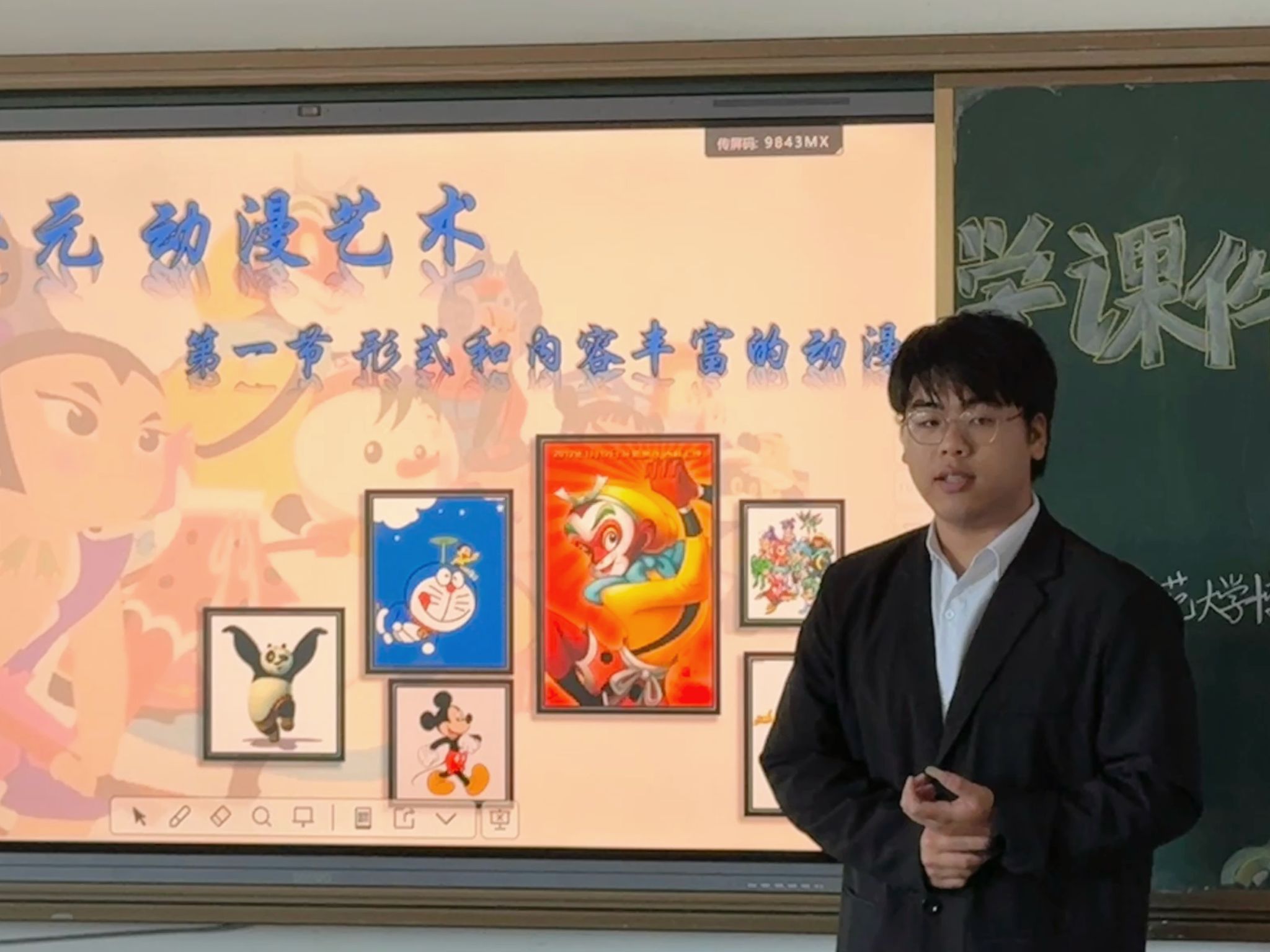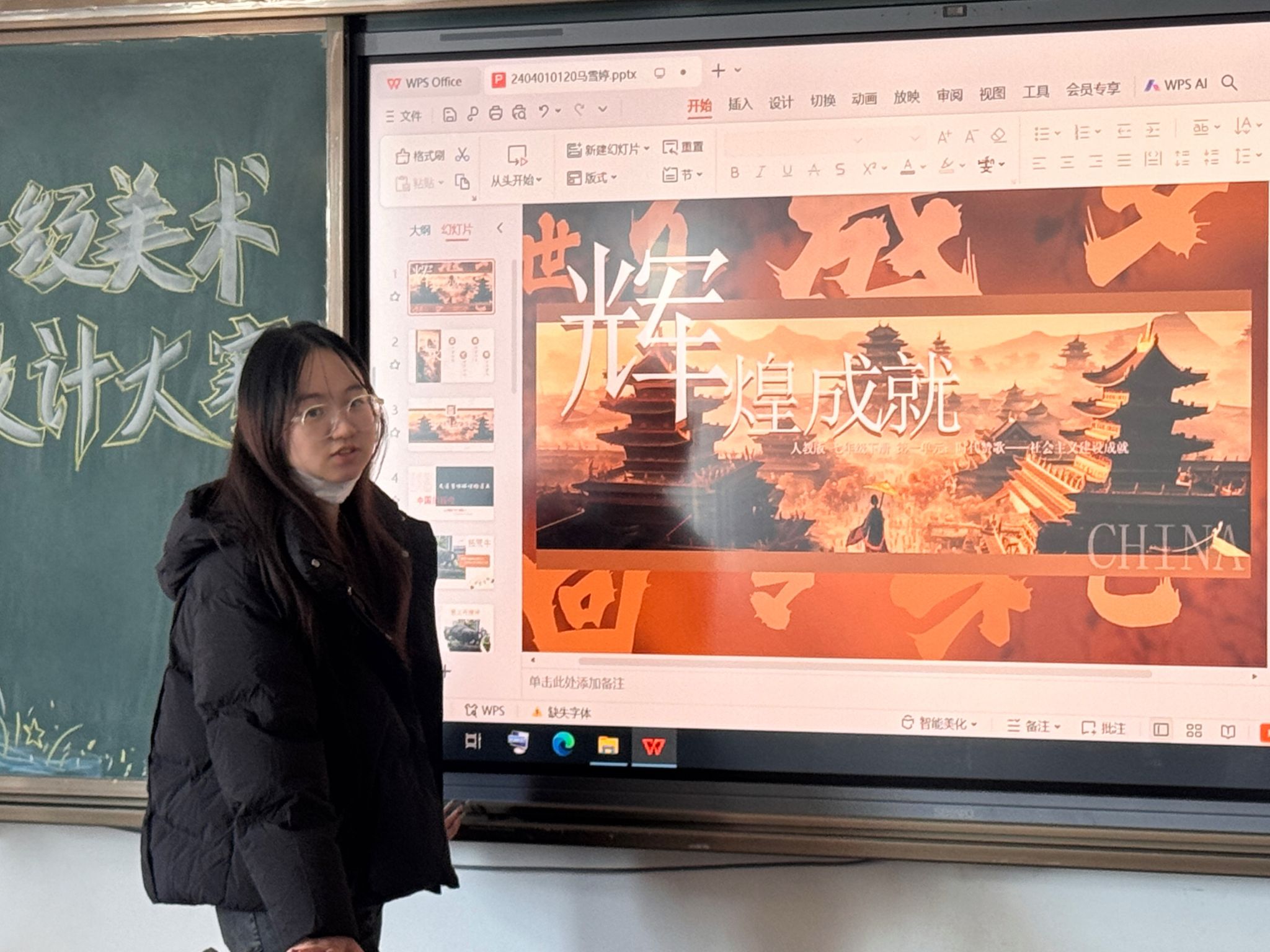 在比赛中,24级美术学专业学生依次上台展示自制课件,内容涵盖美术史论、技法解析与创作实践。部分作品还大胆尝试了动画、交互设计等跨专业创新手段,视觉效果新颖,充分体现了学生对专业知识的掌握和技术应用能力。